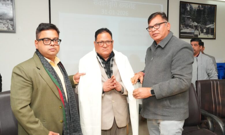 Information and Public Relations Department कार्यक्रम को सम्बोधित करते हुए संयुक्त निदेशक डाॅ. नितिन उपाध्याय ने कहा कि विभाग से सेवानिवृत्त होने वाले कार्मिकों के योगदान को कभी भुलाया नही जा सकता है। विभाग की प्रगति में सेवानिवृत्त कार्मिकों का महत्वपूर्ण योगदान है। इस अवसर पर फोटो फिल्म अधिकारी शेखर चन्द्र जोशी, सहायक लेखाकार कीर्ति सिंह पंवार, व्यवस्थाधिकारी रामपाल सिंह रावत द्वारा भी अपने विचार व्यक्त किये गये।