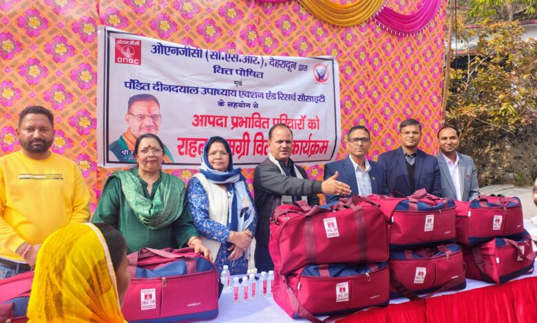 ओएनजीसी के सहयोग से आपदा प्रभावित परिवारों को वितरित की राहत सामग्री