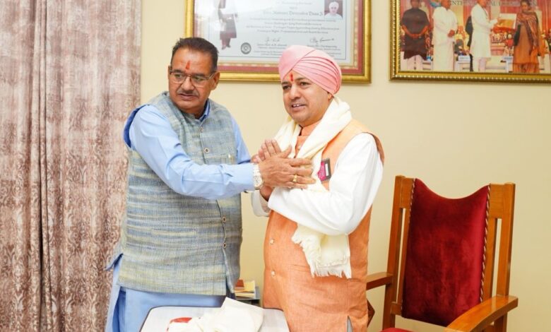 प्रदेश के कृषि एवम् कृषक कल्याण मंत्री गणेश जोशी ने सोमवार को श्री दरबार साहिब में माथा टेका। उन्होंने श्री दरबार साहिब के श्रीमहंत देवेन्द्र दास जी महाराज से शिष्टाचार भेंट की और आशीर्वाद प्राप्त किया। दोनांे के बीच प्रदेश के समसामयिक विषयों पर विस्तारपूर्वक चर्चा हुई। श्री दरबार साहिब की परंपरा के अनुसार सोमवार को केबिनेट मंत्री उत्तराखण्ड सरकार का स्वागत किया गया। इस अवसर पर केबिनेट मंत्री ने सभी संगतों और श्रद्धालुओं को ऐतिहासिक झण्डे जी मेले की बधाई एवम् शुभकामनाएं दीं।