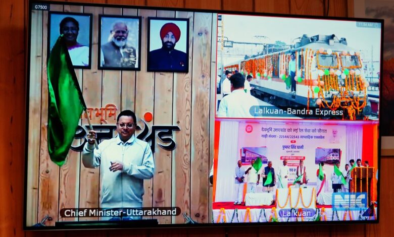 देहरादून। मुख्यमंत्री पुष्कर सिंह धामी ने सोमवार को वर्चुअल माध्यम से लालकुआं-बांद्रा सुपरफस्ट ट्रेन को हरी झण्डी दिखाकर रवाना किया। मुख्यमंत्री ने कहा कि बाबा कैंची धाम के आशीर्वाद से आज लालकुंआ से बांद्र के मध्य ट्रेन संचालन का स्वप्न पूरा हुआ है। इसके लिए उन्होंने प्रधानमंत्री श्री नरेन्द्र मोदी और रेल मंत्री श्री अश्विनी वैष्णव का आभार व्यक्त किया।